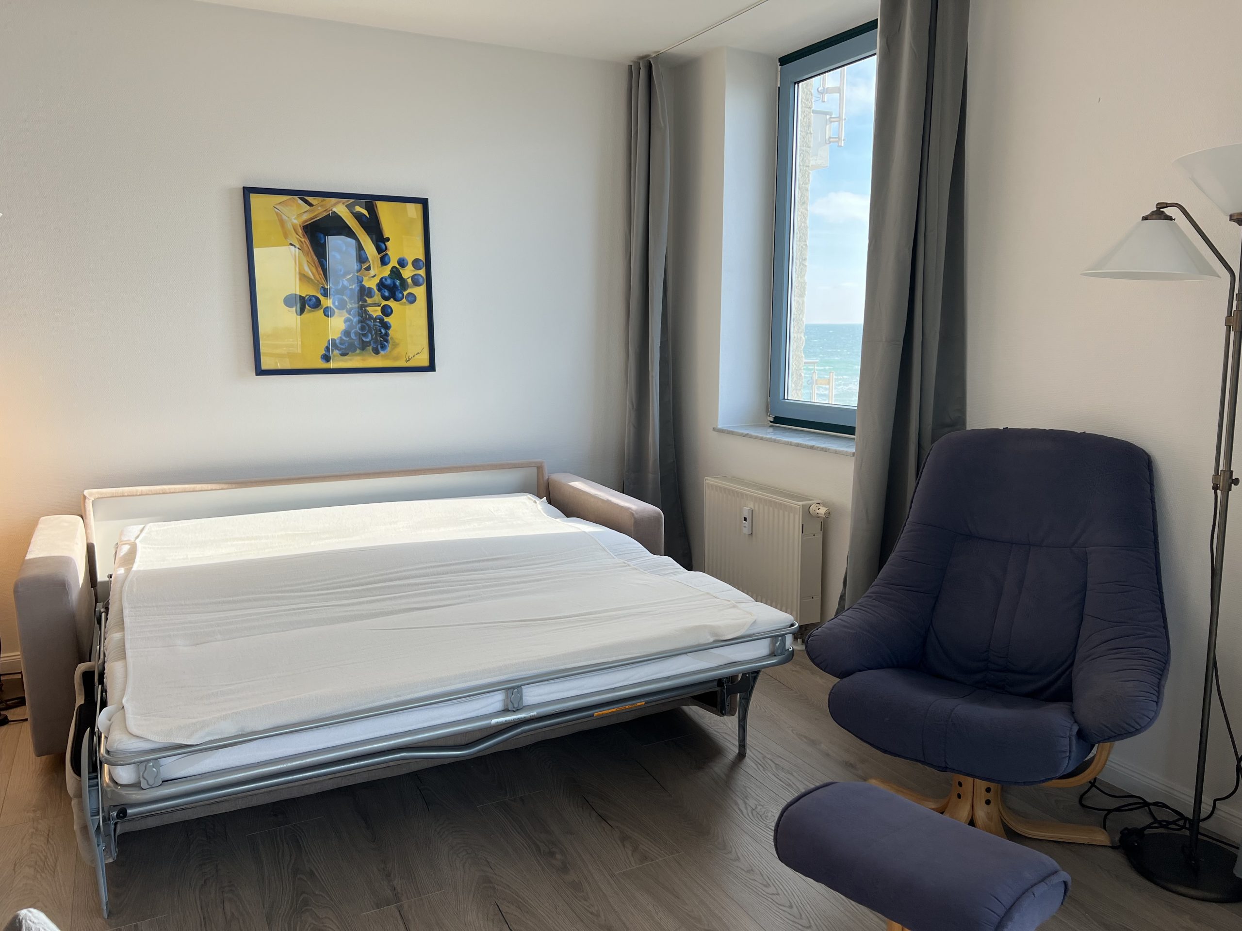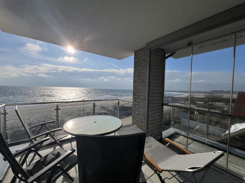 Entspannen Sie sich auf dem großen Südbalkon mit Blick auf’s Meer.