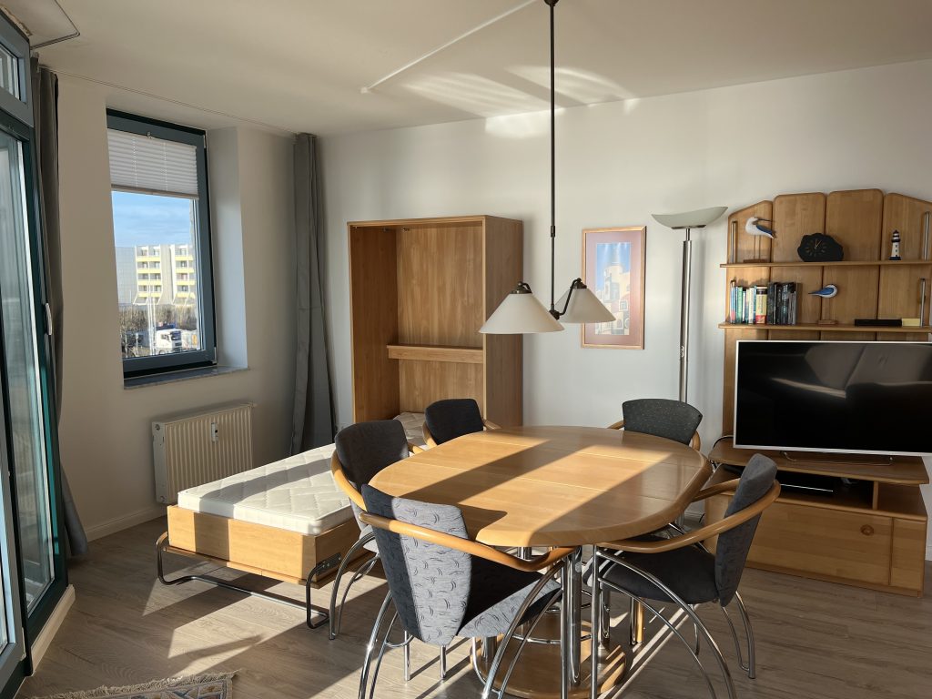 Die Nutzung dieses komfortablen Appartements ist geeignet ganzjährig für bis zu 5 Personen. Die Wohnung verfügt über ein großes Schlafzimmer mit Doppelbett und ein großes Wohnzimmer mit Schlafsofa und einen Schrankbett.